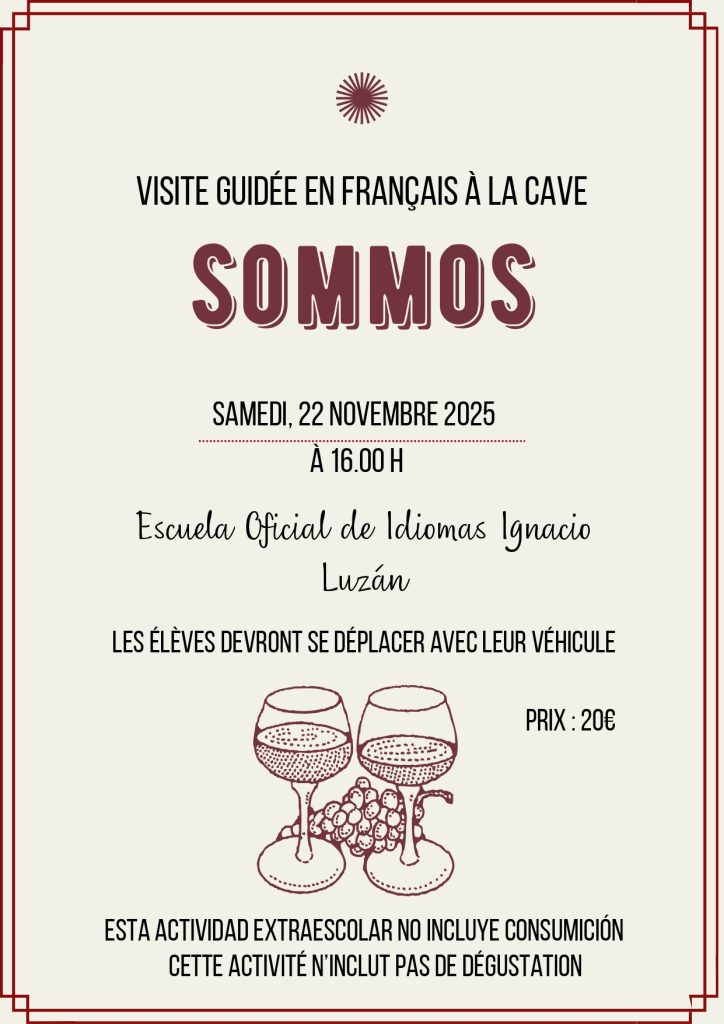 Los estudiantes de francés aún están a tiempo de apuntarse a la visita en la bodega SOMMOS. Contactad con el departamento de francés para más información.