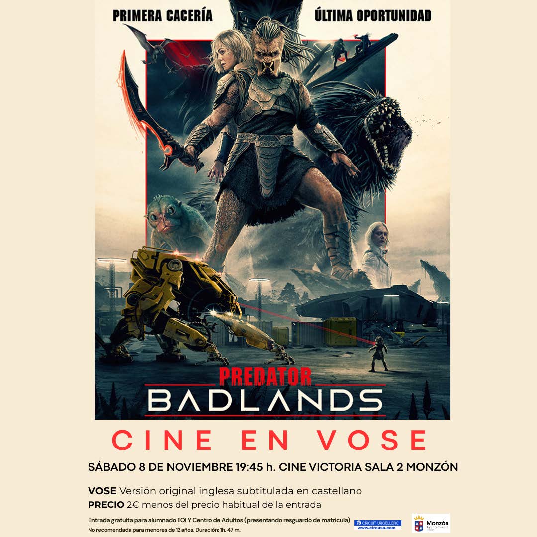 Os informamos que el SÁBADO 8 DE NOVIEMBRE 19:45H en la sala 2 del Teatro-Cine Victoria, se proyectará la película en VOSE: PREDATOR : BADLANDS