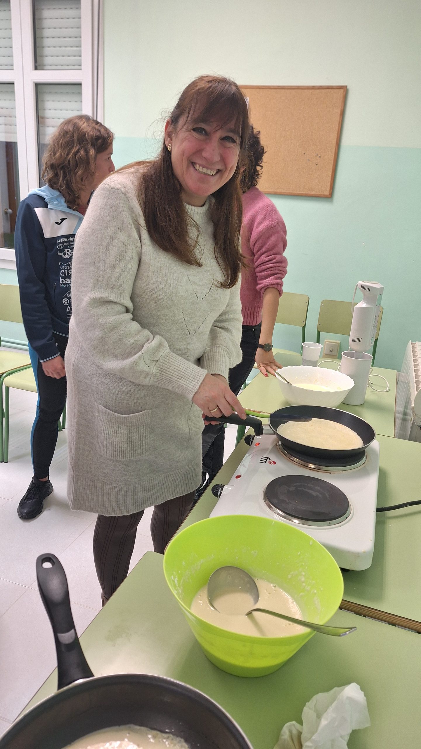 Les élèves de Français fêtent la Chandeleur en faisant sauter les crêpes ; un moment amusant, chaleureux et convivial en classe.